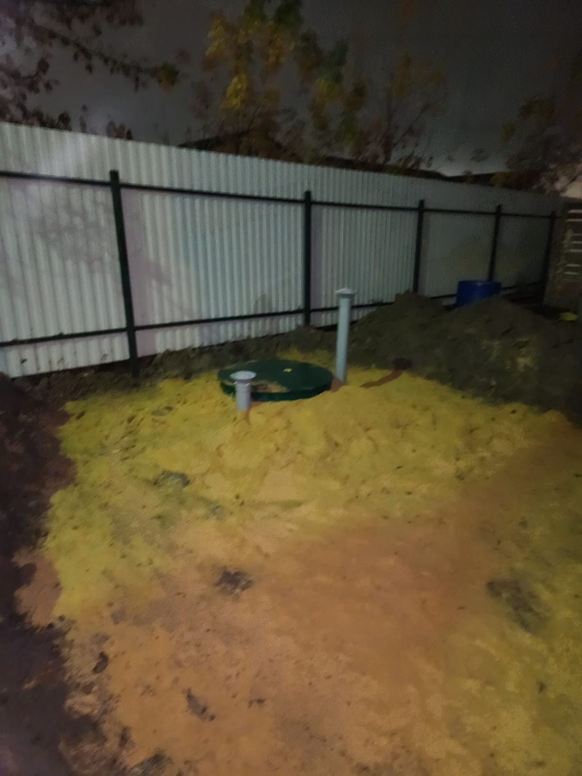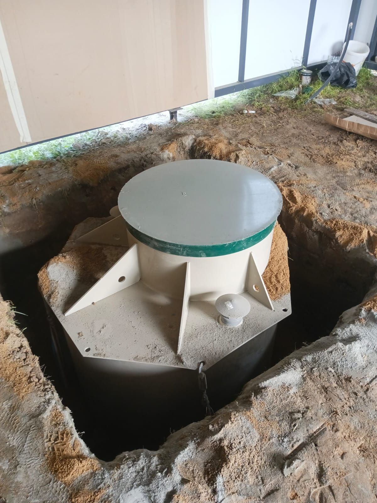 Погреб установлен аккуратно и подготовлен к эксплуатации.